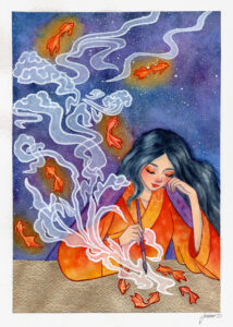 TRADITIONAL PAINTINGS AllOilWatercolorAcrylic By the Beach2024 Oil on canvas 9 x 12 in (30.3 x 22.7 cm) Sea Breeze2024 Oil on canvas 9 x 12 in (30.3 x 22.7 cm) Calm Water2024 Oil on canvas 12 x 9 in (22.7 x 30.3 cm) Woman in Blue2024 Oil on canvas 9 x 12 in (30.3 x 22.7 cm) Golden Hour2024 Oil on canvas 9 x 12 in (30.3 x 22.7 cm) Flower Picking2024 Oil on canvas 9 x 12 in (30.3 x 22.7 cm) Lady in Red2021 Acrylic on canvas 30 x 40 in (76.2 x 101.6 cm) Water Lilies2021Acrylic on canvas30 x 30 in (75 x 75 cm) Water Lily Garden2021Acrylic on canvas20 x 20 in (50.8 x 50.8 cm) Lotus Flowers2024Watercolor on paper11.2 x 8 in (28.4 x 20.2 cm) Moonlight Wisteria2021Watercolor on paper8.2 x 11.1 in (20.8 x 28.2 cm) Dreaming of Clouds2021Watercolor on paper7.7 x 10.8 in (19.5 x 27.5 cm) Girl and the Parrot2021Watercolor on paper8.2 x 11.1 in (23 x 30 cm) Rebirth2021Watercolor on paper8.2 x 11.1 in (20.4 x 28.2 cm) Magic of the Brush2021Watercolor on paper8.1 x 11.2 in (20.5 x 28.5 cm) Red Peonies2021Watercolor on paper8.1 x 11.1 in (20.5 x 28.2 cm) Wave of Dreams2021Watercolor on paper6.1 x 9 in (15.5 x 23 cm) Pink Peonies2021Watercolor on paper6.1 x 9 in (15.5 x 23 cm)